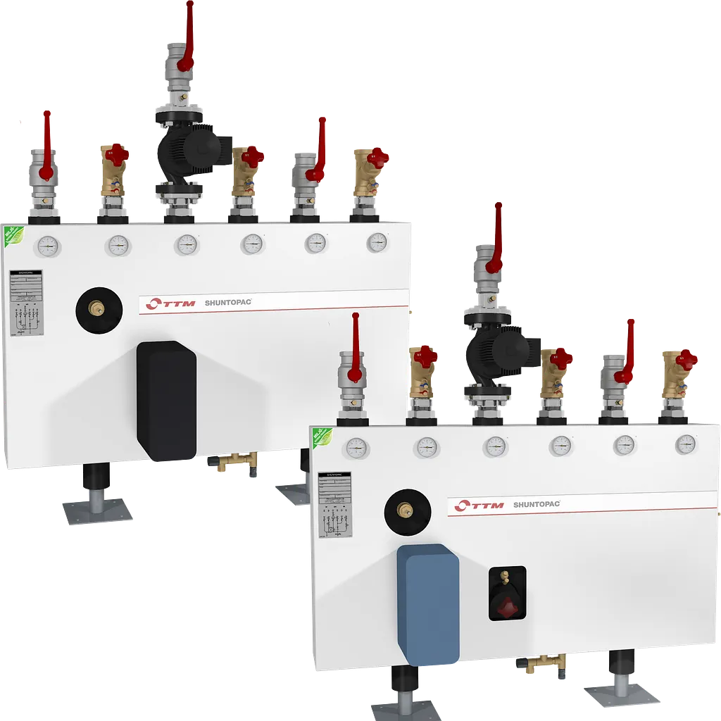 TTM Energiprodukter har ett brett program av prefabricerade shuntgrupper för värme, kyla och värmeåtervinning samt kombinerande shuntgrupper som innehåller två eller flera av dessa funktioner. Genom att välja en Shuntopac shuntgrupp får du en korrekt dimensionerad och väl fungerande shuntfunktion i din anläggning. Sortimentet presenteras under respektive shunttyp.